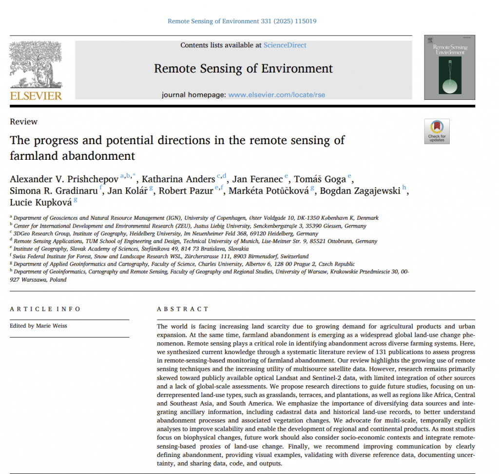 We are proud that, as a result of our 4EU+ collaboration, we have successfully published our paper, “The Progress and Potential Directions in the Remote Sensing of Farmland Abandonment,” in the journal Remote Sensing of Environment !